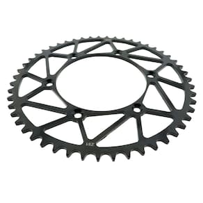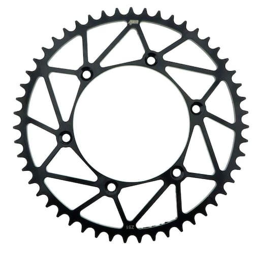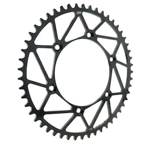 A coroa é responsável por transmitir a potência do motor para a corrente, que por sua vez a passa para a roda traseira.
