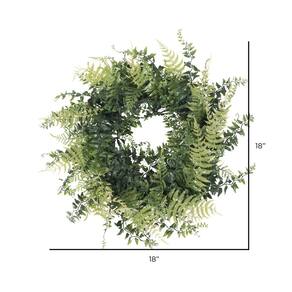 - Coroas de samambaia sintética dão uma sensação de boas-vindas a qualquer ambiente. Mede 18" de altura x 18" de largura 4" de profundidade.