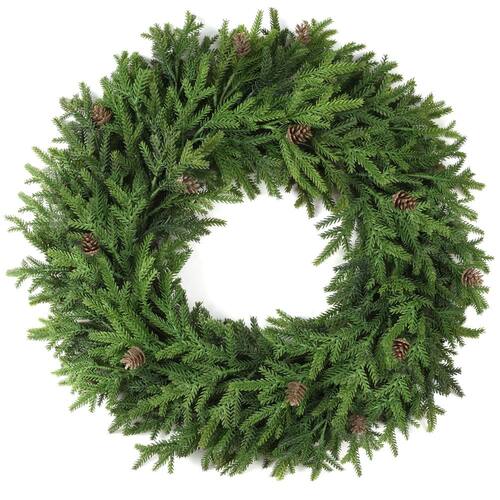 - Aparência exuberante e completa: dê um toque de alegria natalina à sua casa com nossa exuberante coroa de Natal em folha de pinheiro. Feita com galhos de pinheiro artificiais de alta qualidade e adornada com lindas pinhas, esta porta tem uma aparência vibrante e completa que dura toda a temporada.