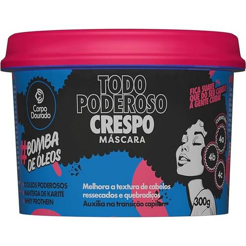 12 Óleos Poderosos: Óleo de Argan; Óleo de noz de karité; Óleo de macadâmia; Óleo de Coco; Óleo de Camomila; Óleo de Aloe Vera; Óleo de chá Verde; Óleo de canela; Óleo de cálamo; Óleo de mirra; Óleo de oliva; Óleo de semente de algodão. Manteiga de Karité: Além de hidratar, forma uma película protetora em Volta da fibra Capilar, o que evita a perda de água dos fios. Whey Protein: Atua na parte interior do fio, agindo de dentro para fora. Garantindo Nutrição de forma adequada, reforçando os fios e auxiliando no combate a queda.