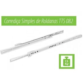 Corrediça simples com abertura 3/4 do comprimento nominal e deslizamento suave com roldanas de poliacetal autolubrificadas.