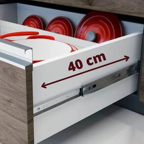 a corrediça telescópica é indicada para gavetas de cozinhas, closets, quartos, banheiros, lavanderias, prateleiras retráteis/extensíveis, bases de teclado e mobiliário em geral. Corrediça telescópica light, uma excelente opção de custo-benefício para seus projetos, mantendo o bom funcionamento das gavetas projetadas por você. Trava de segurança evitando queda na abertura da gaveta. Rolamento via de aço que proporciona deslizamento suave, preciso e resistente. Produzido em aço laminado a frio com tratamento de eletro-zinco. - marca: metalnox contém: 1 par 2 und - comprimento: 40cm / 400mm - largura: 35mm - para uso geral - possibilita a abertura total da gaveta com deslizamento suave, preciso e resistente - corpo em aço galvanizado - deslizamento através de de aço - tipo: telescópica - o par suporta até 30kgs