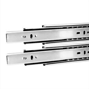Essa corrediça possui capacidade de carga de até 25 kg, sendo resistente e durável, garantindo uma operação confiável e sem falhas. Seu sistema de amortecimento integrado permite um fechamento suave e silencioso da gaveta, evitando batidas e danos.