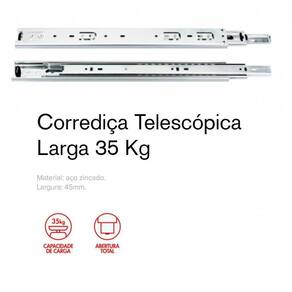 As corrediças telescópicas permitem abertura suave e total de gavetas, pastas suspensas e sistemas telescópicos, possui abertura total, Cada trilho é uma peça única que é fixada tanto na gaveta quanto na parede de apoio. Design moderno e discreto podendo ser usados em quartos, cozinha, banheiros, escritórios, salas de estar e jantar e áreas de serviço.