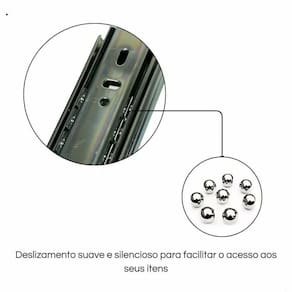 Construção Leve: Fabricada com materiais que combinam resistência e leveza, ideal para aplicações em móveis leves. Compatibilidade: Adaptável a diferentes tamanhos de gavetas, perfeita para uma variedade de móveis, desde cozinhas até escritórios. Instalação Rápida: O design do trilho permite uma instalação simples, fazendo com que você possa montar suas gavetas em pouco tempo.