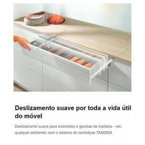 O sistema de corrediças TANDEM distingue-se por um deslizamento suave e silencioso.