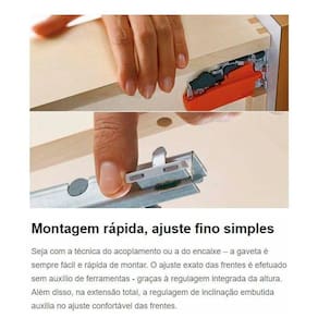 Sistema de amortecimento no fechamento da gaveta, evitando pancadas e ruídos indesejáveis