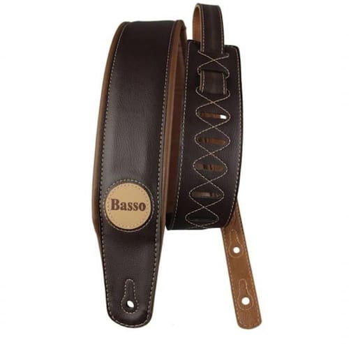 Modelo clássico, produzida em MATERIAL SINTÉTICO MARROM DE ALTA QUALIDADE e forro sintético especial para evitar a absorção do suor. Possui espuma interna para distribuir uniformemente o peso do instrumento no ombro do músico. A ponteira onde o instrumento é engatado foi desenvolvida com um reforço interno a fim de não "esgaçar" e com a ação do tempo, não escapar do instrumento.
