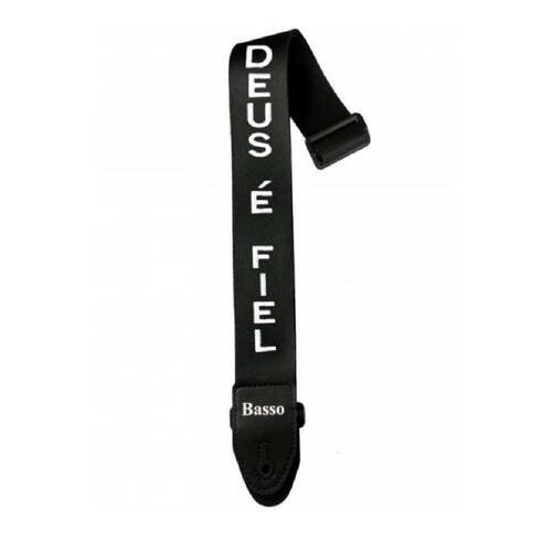 Correia em sintético preto com BORDADO DEUS É FIEL.