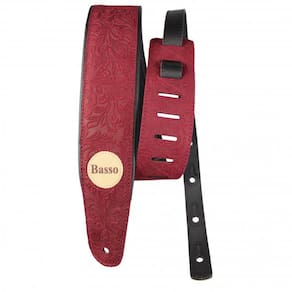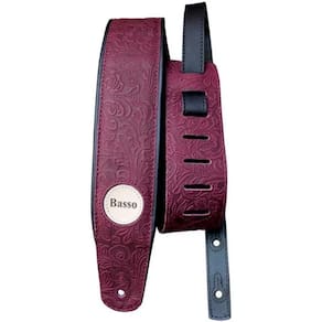 Modelo clássico, produzida com TOP DE COURO FLORAL BORDÔ MACIO DE ALTA QUALIDADE e forro sintético especial para evitar a absorção do suor. Possui espuma interna para distribuir uniformemente o peso do instrumento no ombro do músico. A ponteira onde o instrumento é engatado foi desenvolvida com um reforço interno a fim de não "esgaçar" e com a ação do tempo, não escapar do instrumento.