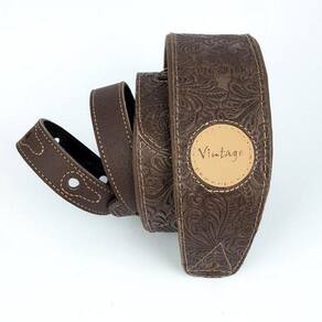 Correia Custom Shop - Edição Limitada Top Em Couro Vintage Com Estampa Floral Café Estilizada Com Revestimento Em Material Sintético Para Evitar a Absorção Do Suor. Comprimento variável entre 1,10 e 1,45 mts e largura de 7,5 cm - estofada. Obs.: A Basso não utiliza couros de animais exóticos. A coleção Custom Shop é produzida com Top (parte de cima) em couros bovinos com estampas de imitação dos originais.