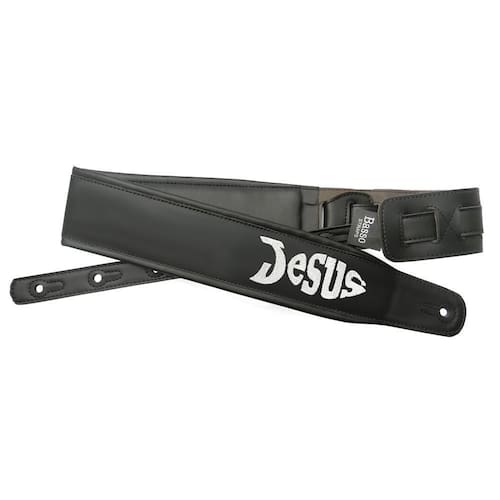Correia em sintético bordada jesus, forrada com material sintético para evitar a absorção do suor, deslizando sobre o ombro do músico. Possui espuma interna para maior conforto.