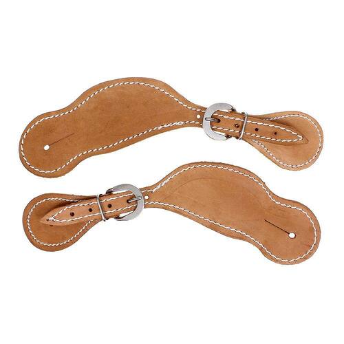 Correia de espora larga Bronc-Steel fabricada em couro na cor Havana com costuras reforçadas e fivelas de aço inox para regulagem.