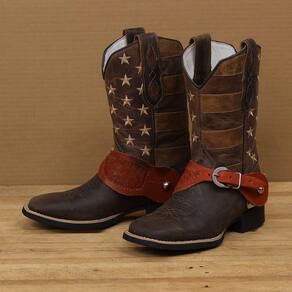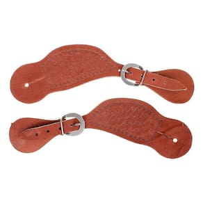 Correia de espora larga Bronc-Steel fabricada em couro meio curtume na cor Marrom com detalhes bordados (entalhados) e fivelas de aço inox para regulagem.