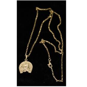 CORRENTE TIJOLINHO VENEZIANA FECHO LAGOSTA (1,5MM) & PINGENTE CAVALO E FERRADURA 2 (P) - BANHADO EM OURO 18K