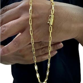 Corrente Alongado 5mm Fecho Canhão Luxo Banhado a Ouro 18k Detalhes do Produto: Material: ligas metálicas de alta qualidade, especialmente tratadas para fixação e absorção do ouro, com acabamento em verniz protetor. Aparência: visual idêntico ao ouro maciço. Produção: artesanal, com atenção meticulosa aos detalhes. Banho: 10 camadas espessas de ouro 18k, finalizadas com verniz antialérgico . Elos: soldados varia conforme o modelo . Pedras: zircônias brilhantes cravejadas quando aplicável . Tamanhos Disponíveis: Cordões Masculinos: 70cm padrão e 60cm sob consulta/Pedido Via Chat . Cordões Femininos: 50cm padrão e 45cm sob consulta/Pedido Via Chat . Pulseiras: 21cm padrão ; tamanhos de 18cm a 23cm sob consulta/Pedido Via Chat. Pingentes: conforme imagens; consulte para mais detalhes via chat. Espessuras Recomendadas para Cordões / Pingentes: P: 1mm a 4mm M: 4mm a 8mm G: 6mm a 13mm Gg: 12mm a 18mm Incluso na Compra: Saquinho de organza para armazenamento seguro. Caixa elegante, perfeita para presente. Cupom de desconto para a próxima compra. Flyer com outros produtos da coleção. Carta de agradecimento personalizada. Adesivo da marca ToJoia18k. Informações Adicionais: : 6 meses termos acompanham o produto . Devolução: 7 dias para devolução sem questionamentos. Envio: despacho em até 24 horas úteis após confirmação do pagamento. Cuidados com a Peça: Evite contato com produtos químicos; aguarde o perfume secar antes de usar. Evite contato com shampoo, condicionadores e suor excessivo. Armazene em local seco, preferencialmente no saquinho de organza fornecido. Uso no mar e piscina é permitido; lave com água corrente e sabão neutro após. Por que Escolher a ToJoia18k Semi-joias luxuosas que combinam estilo, qualidade e sofisticação. Banho espesso de ouro 18k, garantindo brilho duradouro e acabamento impecável. Design exclusivo e produção artesanal, perfeitos para qualquer ocasião. Materiais premium que asseguram durabilidade. Ao escolher uma semi-joia ToJoia18k, você investe em qualidade, elegância e uma experiência única. Aguardamos sua compra Observação: pode ocorrer variação no fecho raramente . Imagens reais, sem edição. Qualquer dúvida, estamos à disposição para esclarecimentos. Marca: Não Informado