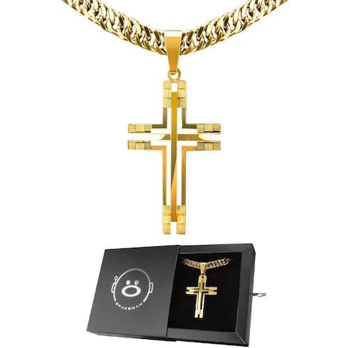 Corrente Banhada Ouro Aço + Pingente Crucifixo Grande + Caixa Casual Qualidade Premium Dourado Cordão Grumet 60cm Banhado 18k Dourado! Elegância e estilo definem este incrível cordão grumet banhado a ouro 18k. Com 60cm de comprimento e largura de 6mm, este acessório é perfeito para dar um toque sofisticado e marcante ao seu visual. O design grande e grosso, aliado ao pingente de 6cm, confere uma presença imponente, garantindo que você se destaque com classe em qualquer ocasião. Adquira já e eleve o seu estilo!