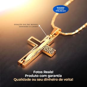 Cordão Dourado 60cm com Pingente Cruz 4cm Banhado Oração Pai NossoAdquira já este incrível cordão dourado de 60cm com pingente em forma de cruz de 4cm, banhado e enriquecido com a poderosa oração do "Pai Nosso". Fabricado em aço de alta qualidade, este acessório durável é complementado por um saquinho de organza para armazenamento prático. Ideal para presentear alguém especial, este conjunto apresenta uma fusão de elegância e significado. A combinação de aço resistente, banho refinado e o toque espiritual da oração torna este conjunto uma escolha significativa e encantadora. Aproveite esta oportunidade e adquira o seu agora mesmo!