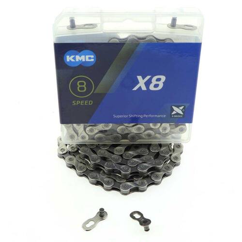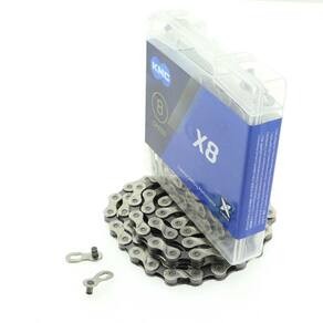 A corrente transmissão bike KMC X8 de 8 velocidades é um componente essencial que conecta os pedais às rodas da bicicleta, permitindo a transferência de energia gerada pelo ciclista para o movimento das rodas.