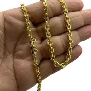 Corrente Cadeado 4mm Luxo Fecho Canhão Banhado a Ouro 18k Detalhes do Produto: Material: ligas metálicas de alta qualidade, especialmente tratadas para fixação e absorção do ouro, com acabamento em verniz protetor. Aparência: visual idêntico ao ouro maciço. Produção: artesanal, com atenção meticulosa aos detalhes. Banho: 10 camadas espessas de ouro 18k, finalizadas com verniz antialérgico . Elos: soldados varia conforme o modelo . Pedras: zircônias brilhantes cravejadas quando aplicável . Tamanhos Disponíveis: Cordões Masculinos: 70cm padrão e 60cm sob consulta/Pedido Via Chat . Cordões Femininos: 50cm padrão e 45cm sob consulta/Pedido Via Chat . Pulseiras: 21cm padrão ; tamanhos de 18cm a 23cm sob consulta/Pedido Via Chat. Pingentes: conforme imagens; consulte para mais detalhes via chat. Espessuras Recomendadas para Cordões / Pingentes: P: 1mm a 4mm M: 4mm a 8mm G: 6mm a 13mm Gg: 12mm a 18mm Incluso na Compra: Saquinho de organza para armazenamento seguro. Caixa elegante, perfeita para presente. Cupom de desconto para a próxima compra. Flyer com outros produtos da coleção. Carta de agradecimento personalizada. Adesivo da marca ToJoia18k. Informações Adicionais: : 6 meses termos acompanham o produto . Devolução: 7 dias para devolução sem questionamentos. Envio: despacho em até 24 horas úteis após confirmação do pagamento. Cuidados com a Peça: Evite contato com produtos químicos; aguarde o perfume secar antes de usar. Evite contato com shampoo, condicionadores e suor excessivo. Armazene em local seco, preferencialmente no saquinho de organza fornecido. Uso no mar e piscina é permitido; lave com água corrente e sabão neutro após. Por que Escolher a ToJoia18k Semi-joias luxuosas que combinam estilo, qualidade e sofisticação. Banho espesso de ouro 18k, garantindo brilho duradouro e acabamento impecável. Design exclusivo e produção artesanal, perfeitos para qualquer ocasião. Materiais premium que asseguram durabilidade. Ao escolher uma semi-joia ToJoia18k, você investe em qualidade, elegância e uma experiência única. Aguardamos sua compra Observação: pode ocorrer variação no fecho raramente . Imagens reais, sem edição. Qualquer dúvida, estamos à disposição para esclarecimentos. Marca: Não Informado Ean: 7899492121187