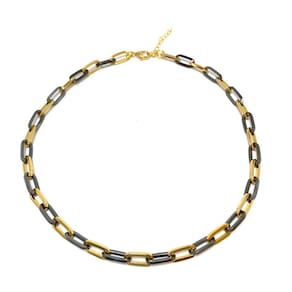 Todo o estilo feminino e atemporal da FNDesign está presente nesta linda Gargantilha Dourada e Grafite com 35cm de comprimento mais extensor. Banhada a ouro 18k, a peça possuiu um acabamento de extrema qualidade, com detalhes que reúnem elegância, beleza e design exclusivo para dar um toque especial ao look. A escolha perfeita para mulheres sofisticadas, que gostam de ter um acessório delicado para ser utilizado em qualquer ocasião. Especificações: Material: Metal antialérgico Característica: Folheado a ouro 18k e Grafite : 3 meses contra defeitos de fabricação Cor: Dourada - Grafite Medida Corrente: 35 cm + extensor Peso: 0,110g Cuidados e conservação Para manter o brilho e a cor da sua joia, são necessários alguns cuidados simples, como evitar o contato com produtos químicos, como itens de limpeza, cloro de piscina, entre outros; procurar não tomar banho com a joia para evitar a opacidade do metal; e limpar a peça com uma flanela macia, guardando-as sempre individualmente. Observação: Imagem com modelo meramente ilustrativa para mostrar a combinação do produto com outros acessórios vendidos separadamente. Será entregue apenas o produto Gargantilha. Sobre a FN Design Sempre em sintonia com as últimas tendências mundiais, as criações da Farida Nesi Design são produzidas dentro das mais rígidas normas de qualidade. Desde a busca das melhores pedras e metais até o lançamento das coleções, todo o processo de confecção das joias folheadas é feito pensando em encantar e atingir a plena satisfação de quem as recebe, fazendo parte de momentos especiais e materializando sonhos e emoções através de lindas joias. Marca: Não Informado