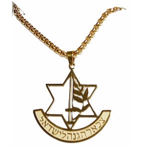 Corrente judaica com estrela de Davi, folha de Oliveira, exercito Israel forças de Defesa de Israel