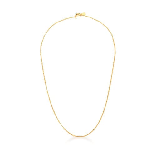 Corrente em malha groumet com bolinhas lisas banhada a ouro.