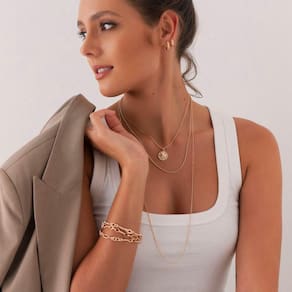 O material base consiste em uma liga metálica de cobre e zinco e recebe o banho de ouro, acrescentamos também um verniz de proteção que garante uma durabilidade maior da peça. Nossas peças não possuem o níquel em sua composição e utilizamos também uma camada antialérgica.