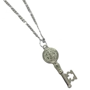 Corrente com pingente chave de são bento 4 cm niquelado correntes com ótima qualidade e o produto é lindo e vai impressionar você vai combinar com você, com este lindo colar 100% e com um símbolo de proteção presenteie uma pessoa querida com os nossos produtos. Cordão de pescoço olho grego com pingente de 2 cm e cordão de 40 cm corrente com pingente ogum niquelado corrente 30 cm pingente 3. 5 x 0. 2 x 4. 0 cm Marca: Lua Mística - 100% Original - Loja Oficial