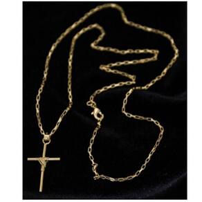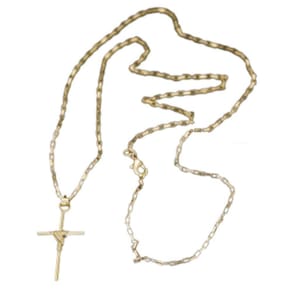 CORRENTE TIJOLINHO VENEZIANA FECHO LAGOSTA (1,5MM) & PINGENTE CRUZ FIO PALITO TRADICIONAL (PEQUENO) - BANHADO EM OURO 18K