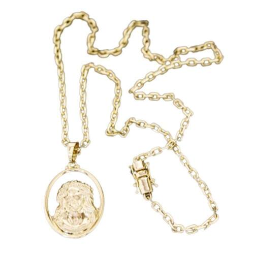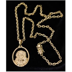 CORRENTE CADEADO FECHO CANHÃO (3MM) & PINGENTE PINGENTE FACE DE CRISTO OVAL VAZADA - BANHADO EM OURO 18K