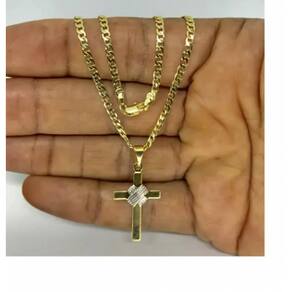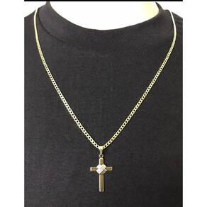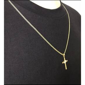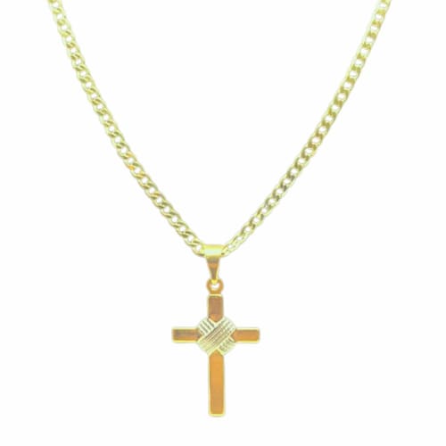 Corrente Cordão Masculina + Pingente Cruz Banhado Ouro 18k 2MM - 70CM