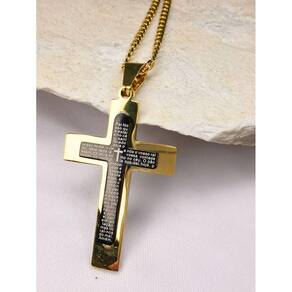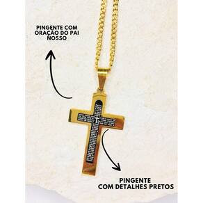 Corrente cordão masculino 70cm dourado pingente cruz oração pai nosso preto aço inox prova d'água Corrente cordão masculino 70cm dourado pingente cruz oração pai nosso preto aço inox premium prova d'água Cordão masculino em aço inox antialérgico com 70cm comprimento dourado com pingente cruz com oraçao do pai nosso, modelo perfeito para homens que querem ficar na moda e dar um up no visual. Cordão aço inox premium. ====================================== Fotos reais do produto na galeria Detalhes técnicos: Marca: visujóias Modelo: corrente cruz Cor: dourado Espessura corrente: 3mm Comprimento: 70cm Incluso: 1 unidade Material: aço inox Código do produto sku : 3400 : 6 meses Todas as peças possuem tratamento antialérgico =================================================== P:minha compra é segura R:toda compra que é feita aqui está em ambiente seguro, isso significa que se caso ocorra algum imprevisto faremos o estorno. R: sim. P: produto é a prova d'água R: sim, pode usar em piscinas e praias que não escurece. P: tem R: sim, todos os nossos produtos tem de 6 meses, contra defeitos de fabricação. Todas as informações de cuidados são enviados junto com o produto. P: posta em quanto tempo P: posso trocar se não servir R: sim, enviamos nosso contato junto com o produto para orientação sobre troca. P: posso devolver se não gostar R: sim, caso não goste do produto é só entrar em contato conosco que iremos orientá-lo como efetuar a devolução. Dúvidas Pergunte à vontade, estamos aqui. ficaremos felizes em responder rapidamente. Aguardamos sua compra e estamos ao seu dispor : Marca: Não Informado