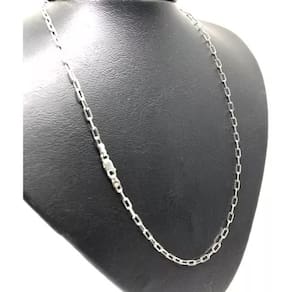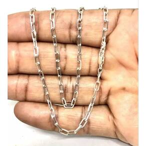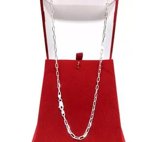 Corrente Cordão Italiano Kartie Cadeado Longa Em Prata 925 60CM 3MM