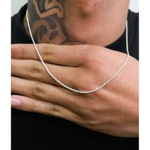Modelo: Elo Baiano, com detalhes entrelaçados que conferem um acabamento elegante e exclusivo. Espessura: 2mm, ideal para um visual leve e discreto, sem perder o charme. Material: Aço inoxidável com banho de prata, garantindo resistência, brilho e durabilidade. Comprimentos Disponíveis: Vários tamanhos para atender ao seu estilo e conforto. Fecho: Seguro e fácil de manusear, pensado para o uso prático no dia a dia.