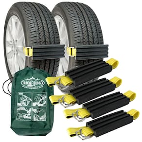DESAPARECE COM TRAC GRABBER uma solução rápida, simples e eficaz quando seu veículo fica preso em todos os tipos de terreno e condições climáticas adversas. Resgate se com esta ferramenta de recuperação de veículos indispensável sem necessidade de guinchos caros COMO FUNCIONA essas correias de tração ajudam os pneus escorregadios a se soltarem em situações de tração inadequada, como neve, gelo, areia ou lama. Um kit de emergência automotivo perfeito para o inverno e um dispositivo obrigatório para caçadores e aventureiros ao ar livre COMO USAR instale ao primeiro sinal de perda de tração. Prenda um Trac Grabber em cada roda motriz e mantenha os pneus dianteiros retos. Elimine qualquer resistência. Aplique lentamente a potência 5 mph e deixe os Trac Grabbers engatar, levantar e mover o veículo para um terreno estável THE ULTIMATE TIRE GRABBER recomendado para uso em seus carros 4 × 4 e com tração nas quatro rodas, ATVs e UTVs. Cada bloco mede 20 L x 7 L x 2 P Centímetros Tamanho da alça 4 x ESTEJA PREPARADO NESTE INVERNO este dispositivo de kit veicular de emergência fácil de instalar pode ser indefinidamente. Feito com borracha EPDM durável e premium, anéis D resistentes, tiras de pneu reforçadas e bolsa de transporte para fácil zenamento Marca: Não Informado