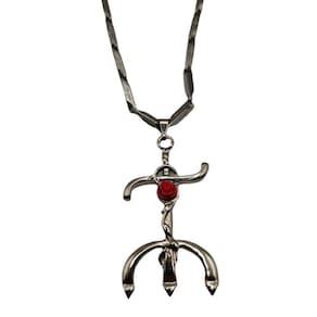 Corrente e Pingente Pomba Gira Tridente 5,5 cm Niquelado