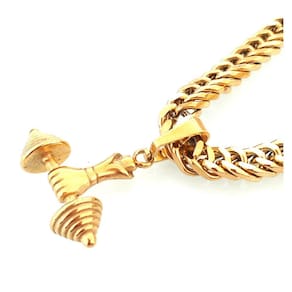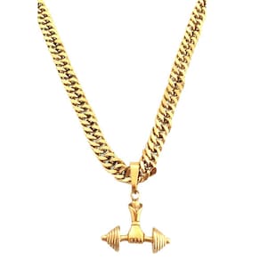 Corrente grume 60cm 10mm e pingente halteres mão aço banhado a ourocorrente grumet masculina grossa com pingente peso halteres de mão aço inox banhado a ouro.porque comprar aço inox 316l conosconossas peças de aço inox contam com uma liga de qualidade, o aço inox 316l.produtos de aço 316l com banho a ouro pvdvantagens da linha de aço folheado com banho pvd no aço inox 316l: com banho pvd gold, com qualidade excepcional e um preço de aquisição baixíssimo. pvd physical vapor deposition tratase de um revestimento cerâmico fino de elevada aderência, realizado num processo de deposição por plasma altamente ionizado numa câmara de vácuo, em que as temperaturas podem variar entre os 150° e 500 °c. as elevadas temperaturas permitem obter revestimentos com elevada pureza, sendo quimicamente inerte e biocompatível. comprimento da corrente: 60 cm largura da corrente: 10 mm altura do pingente com argola: 3,90 largura do pingente: 3,47 cm