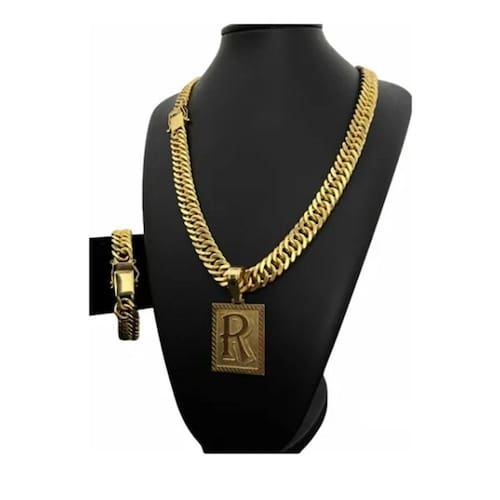 Cordão Grumet Lacraia 13mm Pulseira E Pingente Banhado Ouro