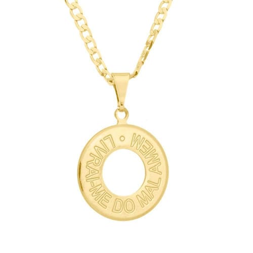Corrente Grumet Fecho Gaveta 2,5mm - 6g - 70 Cm + Pingente Livrai-me Do Mal - 2,0 X 2,0 Cm Modelo: Corrente Grumet Fecho Gaveta + Pingente Livrai-me do Mal