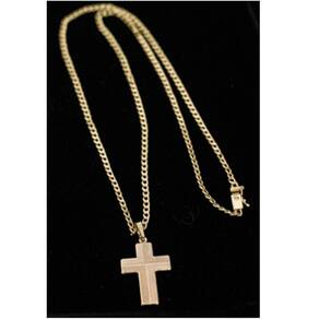 CORRENTE GRUMET PITBULL (3MM) & PINGENTE CRUZ QUADRADA COM LISTRAS (P) - BANHADO EM OURO 18K