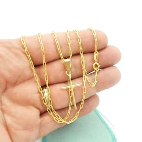 Corrente Masculina 80cm 2mm + Cruz 30mm Folheado Ouro CR689 Corrente Masculina 80cm 2mm 9Gr + Cruz 15x30mm 3Gr - Fecho Boia Beleza e Qualidade Sempre -Marca: Wnbijouterias -Modelo: 1x1 -Largura: 2mm -Modelo Fecho: Boia -Comprimento: 80cm -Peso: 9+3Gr -SKU Vendedor: CR689 Descrição Técnica: - Produto com banho super resistente. - Processo de Folheação em 3 Camadas de Ouro 18k= 750 - Não descasca, não perde a cor, qualidade garantida - Grande tempo de durabilidade. - Acompanha Saquinho porta Jóia. - Todas as Fotos são Reais do Produto Acompanha: Certificado de garantia -Garantia apenas para descascamento do banho da jóia. -A garantia não cobre defeitos de mau uso, aranhões ou quebra de partes da jóia. Contra Indicações: - Não usar creme, shampoo, perfume, protetor solar e outros cosméticos por cima da jóia