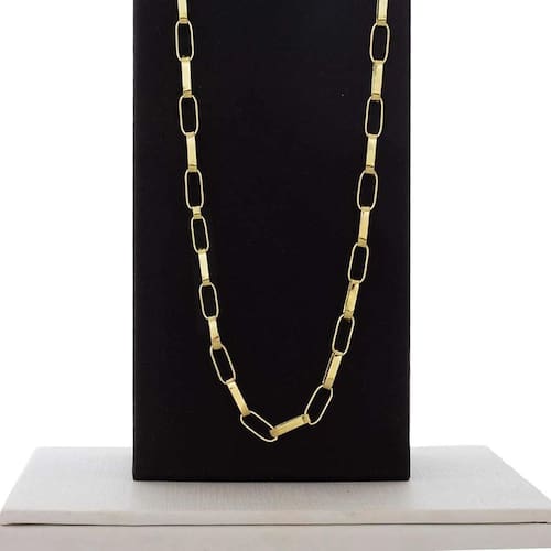 A clássica corrente cartier é uma linha de colares criada para ser versátil e luxuosa ao mesmo tempo. Ela é formada po elos que se ligam uns aos outros, fazendo a composição da corrente de uma forma regular, simétrica, padrão e igual.