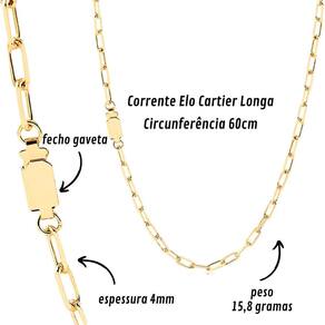 Especificações Amanho De comprimento: 60cm Peso: 15,08 Fecho: Gaveta Espessura Do elo: 4mm Tipo do Elo: Cartie Banho de Camadas: 10 banho de camadas Verniz: Potencializado