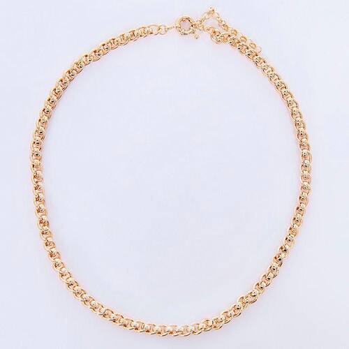 A corrente em elos moderna com 7 milésimos de ouro no banho, mais o verniz premium te deixa em destaque em qualquer situação. Ser única esse é seu grande poder.
