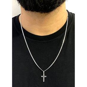 Corrente Prata 925 Grumet Maciça Italiana Pingente Crucifixo