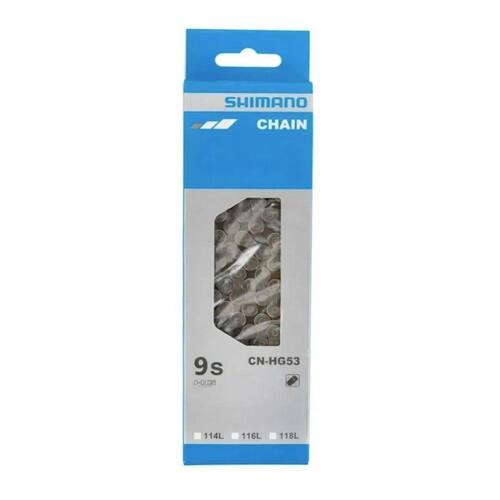 Corrente shimano cn-hg53 114l 9v Corrente shimano 9v cn-hg54 A corrente da shimano modelo cn-hg53 para 9 velocidades foi desenvolvida para ser aplicada em bicicletas com marchas, sendo extremamente durável e resistente, detalhes que já são conhecidos pelos usuários da renomada marca pioneira do segmento fundada em 1921 no japão.