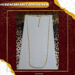 Corrente Singuel folheado a ouro 18k Corrente Singuel malha Singapura folheado a ouro,versátil uso para todas as ocasiões e todos os looks,peça coringa para o seu porta joia.Super tendência ideal para fazer combinações com mix de colares mais longos deixando você linda e elegante com as semi jóias Maria Rita Designer. Ficha técnica; Tipo de banho: Folheado a ouro Cor do banho:Dourado Tamanho:45cm comprimento 5cm alongador Peso:2,0gs Você receberá suas semi joias embalada em caixa acompanhada do certificado de . Cuidados e conservação com a semi joia: Para o seu conforto utilizamos materiais que reduzem o risco de alergia e camadas de banho de qualidade que aumentam a durabilidade ,por isso a de 2 anos. FREE NÍQUEL Para manter o brilho e a cor da sua semi jóias, são necessários alguns cuidados simples, como evitar o contato com produtos químicos, como itens de limpeza, cloro de piscina, entre outros; procurar não tomar banho com a semi jia para evitar a opacidade do metal; e limpar a peça com uma flanela macia, guardando-as sempre individualmente. A Maria Rita Designer acredita que toda mulher é única e especial. Nosso é contribuir com o destaque de sua beleza através das criações das semi jóias de altíssima qualidade, com modelos clássicos, modernos e contemporâneos, ideal para qualquer momento do seu dia. SEJA UNICA usemariaritadesigner Marca: Não Informado Ean: 7897133126430