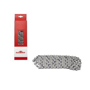 Corrente para bicicleta em aço 07 velocidades indexada Uso em: bicicletas que utilizam roda livre de 7 velocidades ou pinhão k-7 Power link emenda : não acompanha Medida: 116 elos Cor: Cinza Escuro Marca: Sunrace