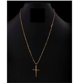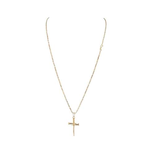 CORRENTE TIJOLINHO VENEZIANA FECHO LAGOSTA (1,5MM) & PINGENTE CRUZ PREGO - BANHADO EM OURO 18K